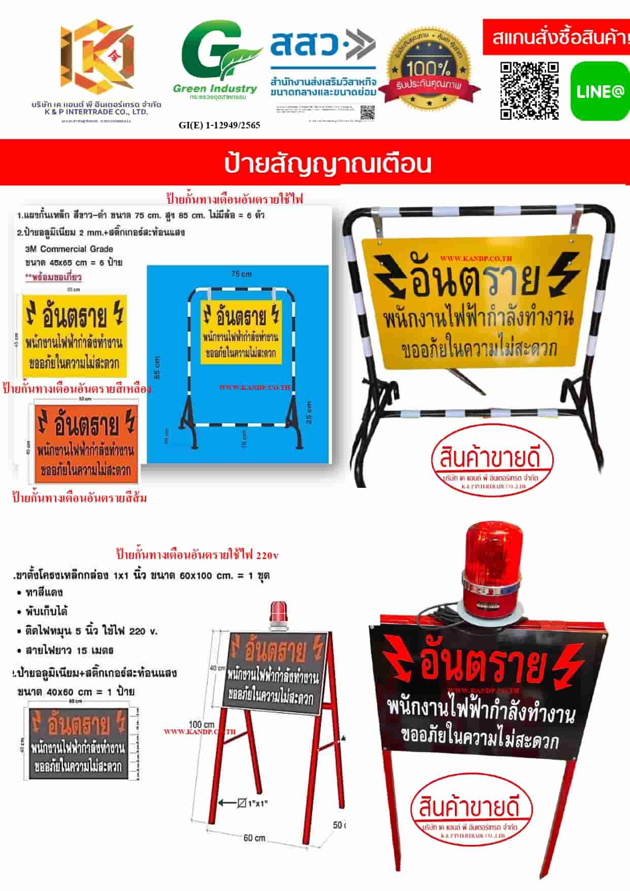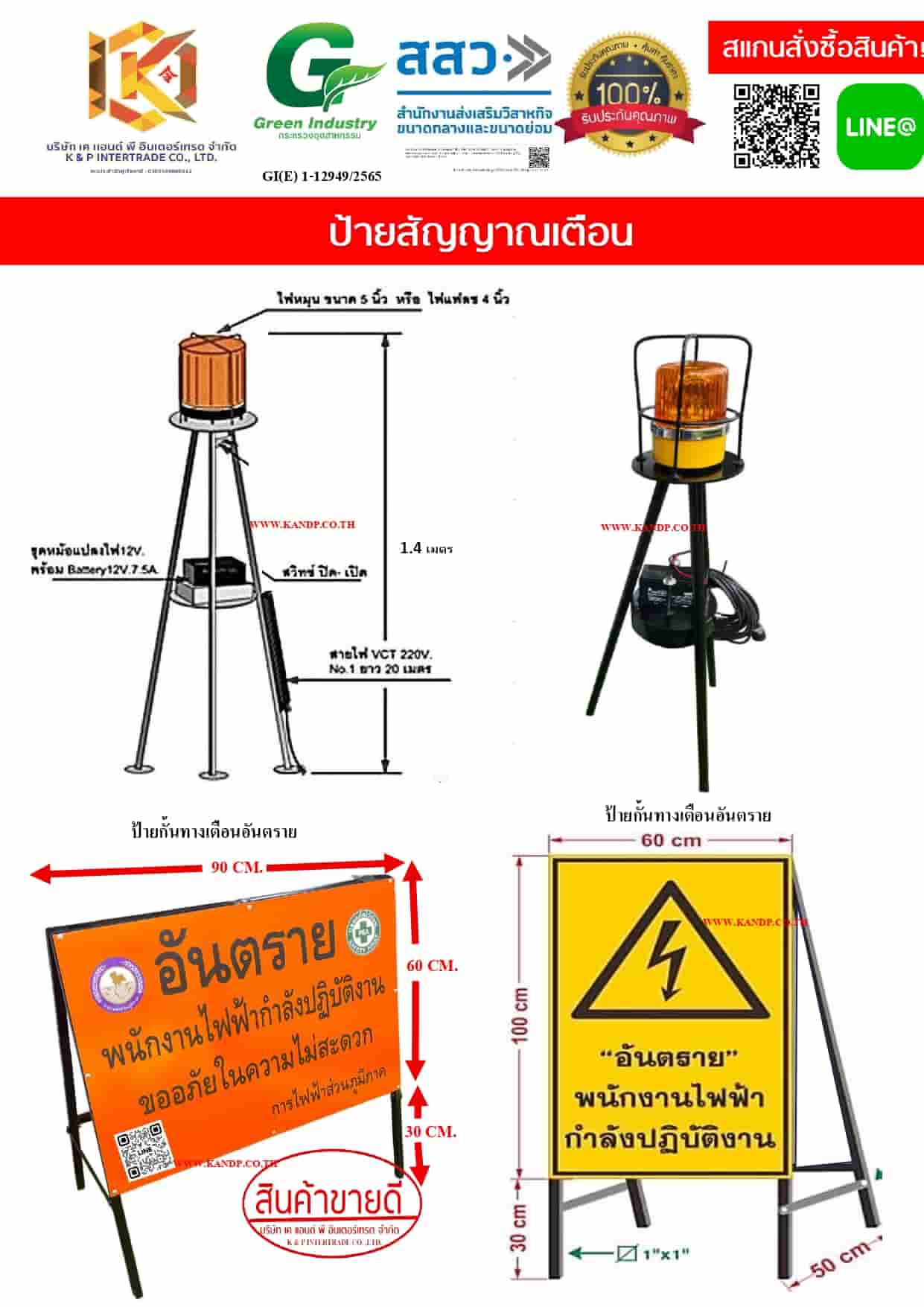 ป้ายสัญญาณเตือนไฟหมุน (2 ระบบ แบตเตอรรี่และไฟฟ้า220v)..