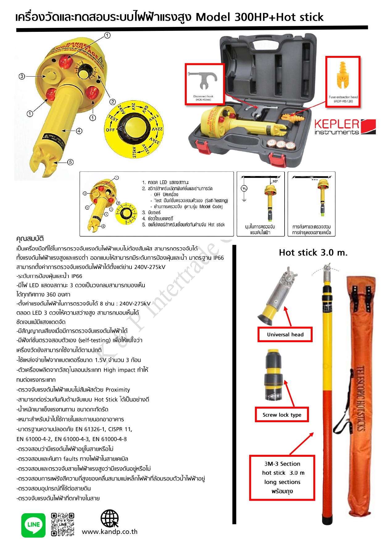 KEPLER K300 HP เครื่องตรวจจับแรงดันไฟฟ้าแรงดันสูงแบบไม่สัมผัส KEPLER K300 HP (275kV02), 9 Ranges 240V~275kV AC