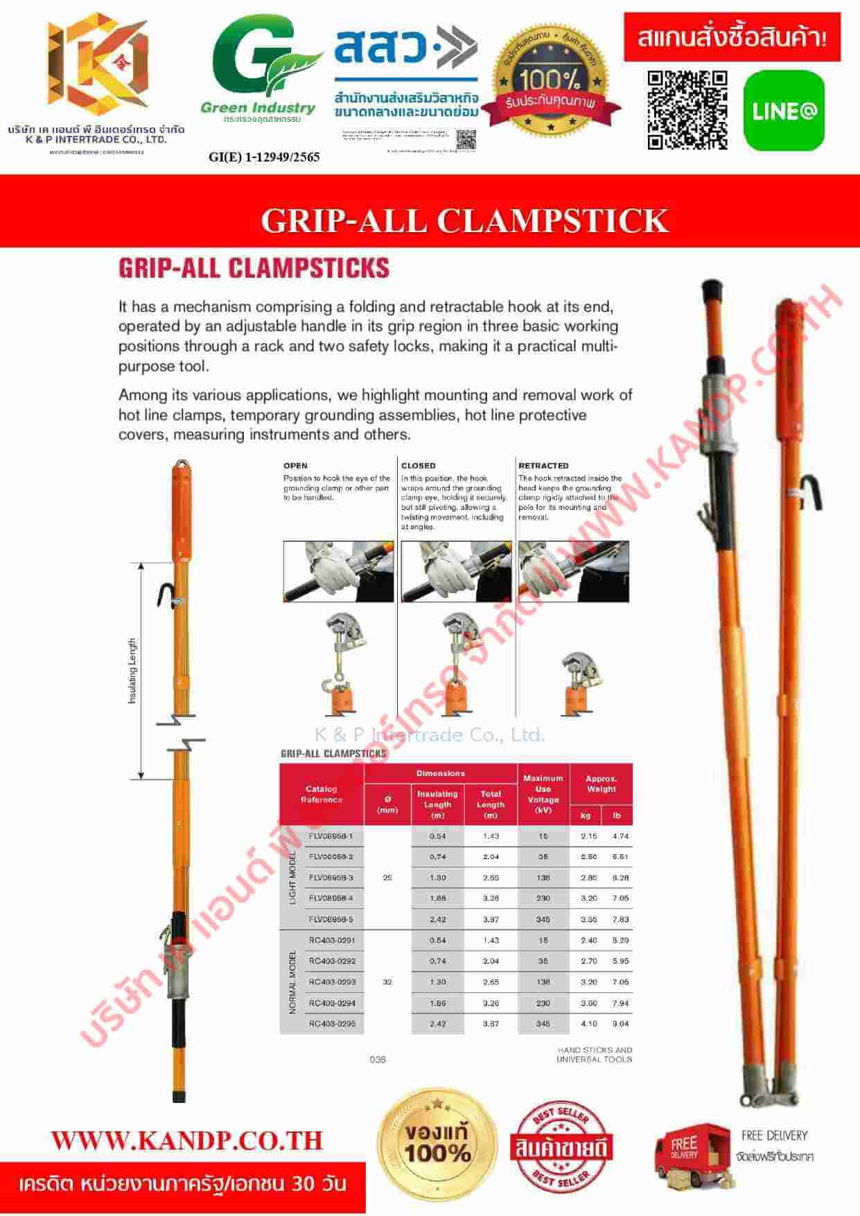เครื่องมือช่างไฟฟ้าแรงสูง Hot line EquipmentRITZ บลาซิลGrip-all Clampstick 8 Ft.Grip-all Clampstick ..