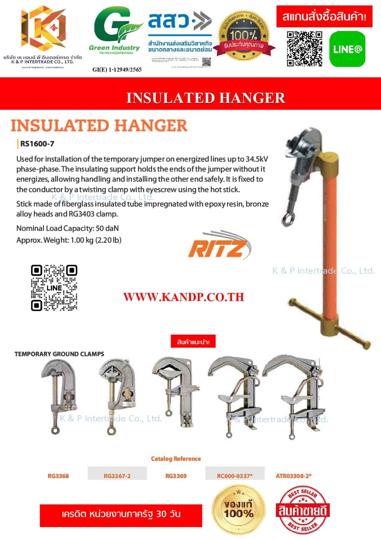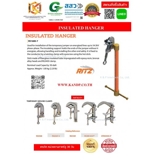 · ชุดประกอบฉนวนค้ำยันสายไฟ · Ratchet Hoist แบบผ้าใบ · Ratchet Cable Cutter · Insulator Cover · InsulatedHanger