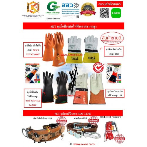 ถุงมือป้องกันไฟฟ้าแรงสูง NOVAX Class 3 (26500V)+ถุงมือหนังสวมทับแรงสูง UNI