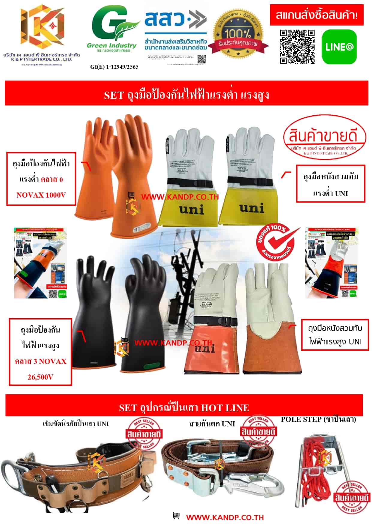 · ชุดประกอบฉนวนค้ำยันสายไฟ · Ratchet Hoist แบบผ้าใบ · Ratchet Cable Cutter · Insulator Cover · InsulatedHanger