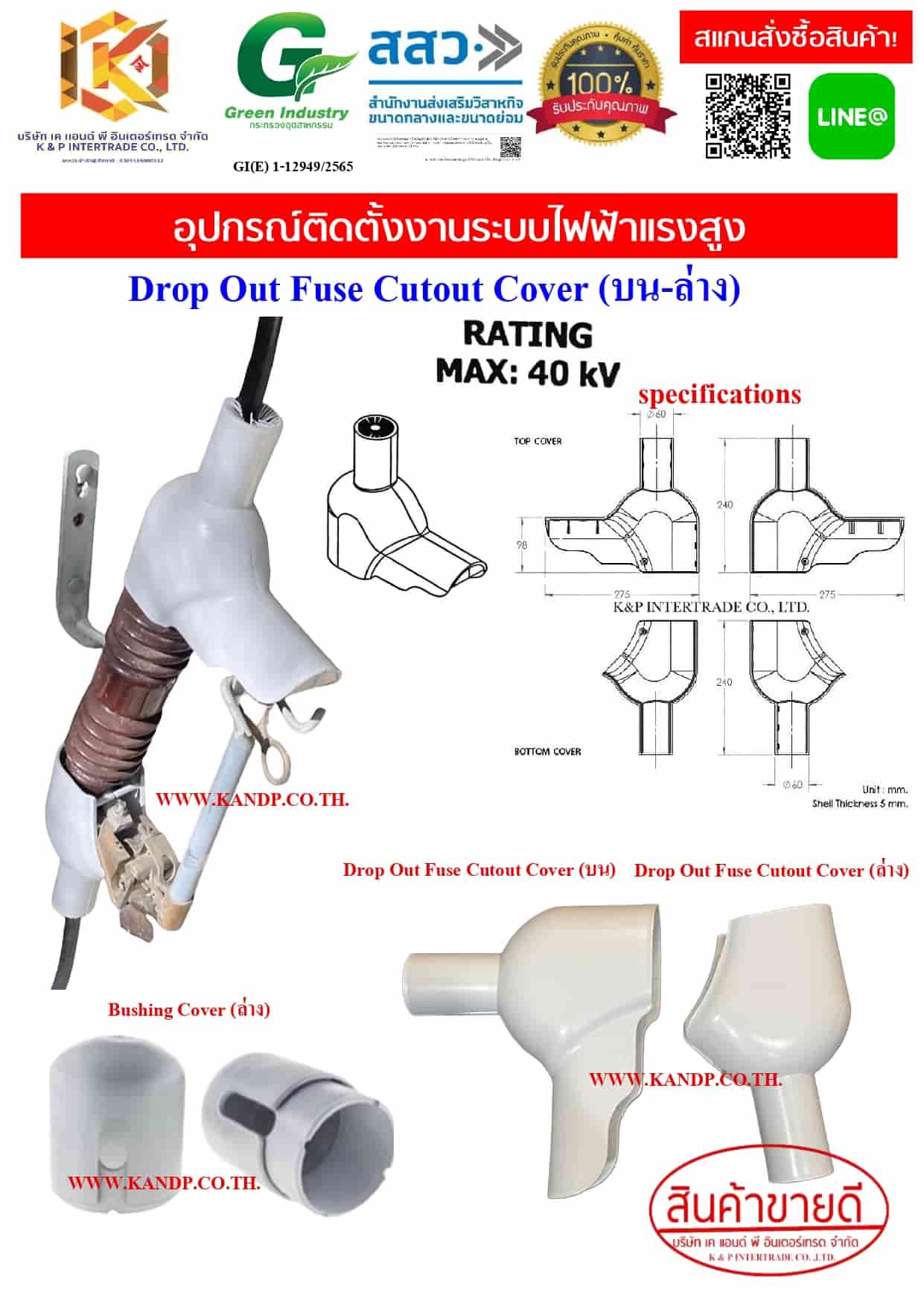 Drop Out Fuse Cutout Cover - ฉนวนครอบดรอปเอาท์ กันไฟฟ้า 40kV.